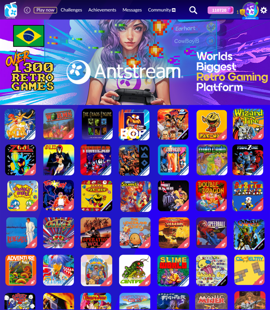 A Antstream Arcade é a maior biblioteca oficial do mundo de jogos retrô para streaming, com mais de 1300 títulos disponíveis para jogar em diversos dispositivos, incluindo PC, mobile e, agora, Xbox no Brasil. Com cooperação local, torneios semanais, centenas de desafios e uma tabela de classificação global, há muitas maneiras novas de jogar títulos clássicos. Além disso, o sistema em nuvem da Antstream salva instantaneamente o progresso do jogo para que os jogadores possam parar e voltar aos games a qualquer momento.