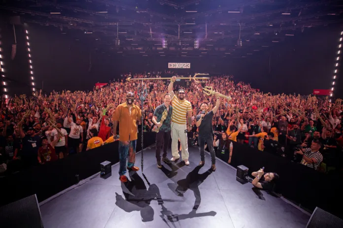 A proximidade da data estreia de Aquaman 2: O Reino Perdido foi relembrada em grande estilo no domingo, 03 de dezembro, no palco Thunder, durante a CCXP23. O painel, que reuniu os atores Jason Momoa, Yahya Abdul-Mateen II e Patrick Wilson, levou os fãs à loucura. O diretor James Wan, responsável pela franquia, também se juntou ao elenco de estrelas para falar com o público sobre o longa que promete ser destaque nos cinemas a partir de 20 de dezembro deste ano.