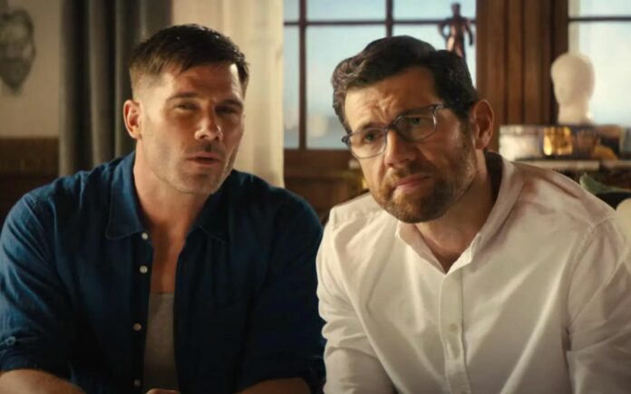 O dilema do filme não é “eles vão ou não vão?” Luke Macfarlane é habilidoso em uma ruga de sobrancelha labradora que pode fazer qualquer um desmaiar. O suspense vem ao ver Eichner lutando para conciliar seu cinismo de cérebro galáctico com as principais características das comédias românticas: uma corrida na calçada inspirada em Harry e Sally – Feitos Um para o Outro (1989) e um final feliz em que até ele pode acreditar um pouco no amor.