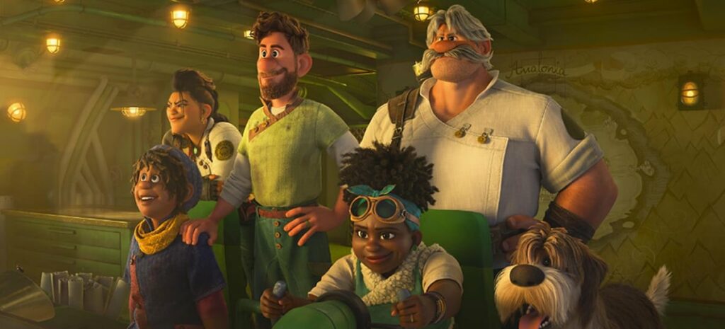 Com uma trama que tem claras influência nas revistas pulp, nas histórias de Júlio Verne e no enrede de Indiana Jones, Mundo Estranho usa esses elementos como pano de fundo para mostrar o conflito de gerações em uma família. Esse assunto é desenvolvido de modo previsível pelo roteiro escrito por Qui Nguyen (Raya e O Último Dragão) que decide abordar a diferença entre as três gerações da família Clade de modo hipócrita. Analisando friamente, a atitude de cada um deles em relação a geração é a mesma e os temas que realmente poderiam gerar um conflito real como a questão de aceitação ou o abandono, nunca são levados em conta pela produção e acabam sendo deixados de lado. Produções como Encanto e Red: Crescer é uma Fera abordaram os mesmos temas que Mundo Estranho de modo muito mais interessante e relevante. Para piorar a produção carece de cenas de ação que realmente empolguem e com isso a trama segue do início ao fim em banho maria, algo que pode entediar quem assiste a trama esperando um pouco de emoção. De melhor temos a inserção de questões da representatividade LGBTQIA+, que é apresentado de modo natural e bastante crível. A mensagem ambiental para os pequenos no fim do filme também fica clara e tem seus méritos, mesmo sem empolgar.
