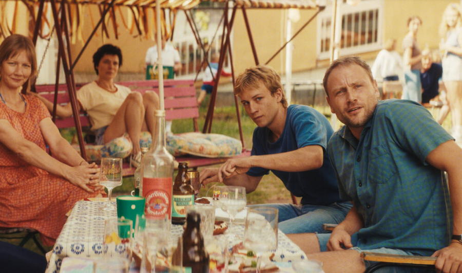 É necessário sempre um cuidado especial com uma história que envolva política, especialmente de um momento delicado da história alemã como o da reunificação. Não dá pra tratar esse tema como pano de fundo qualquer, porque ele carrega traumas, perdas e contradições muito vivas — e ‘O Grande Golpe do Leste’ parece entender bem isso. O filme traz uma ambientação cheia de calor visual, com cores quentes e uma luz quase nostálgica, mas por trás da estética leve e da trilha envolvente, existe uma tensão constante entre dois sistemas: o que estava desmoronando (o socialismo do leste) e o que chegava com força total (o capitalismo do oeste), mesmo que seja em tom de piada. A graça do filme é que ele não precisa explicar isso em voz alta. A crítica está nos gestos, nas compras desenfreadas, nas conversas entre vizinhos, no jeito que os personagens tentam encontrar algum controle em meio ao caos econômico. Tem comédia? Tem. Mas por trás da risada vem sempre a lembrança de que aqueles personagens estão tentando não perder o pouco que ainda lhes resta de identidade.