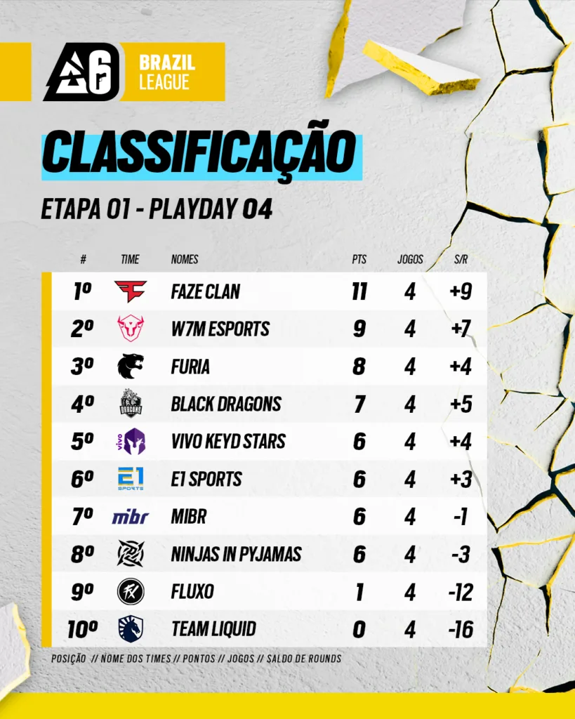 Equipes como E1 Sports, MIBR e Ninjas In Pyjamas têm campanhas consistentes, com duas vitórias e duas derrotas cada, mas ainda precisam se provar para garantirem suas vagas para os playoffs da BLAST R6: Liga Brasileira e carimbarem o passaporte para o BLAST R6: Major Manchester em maio.
