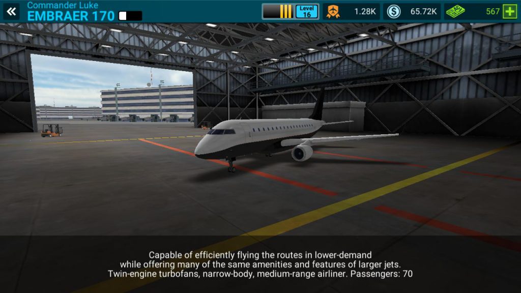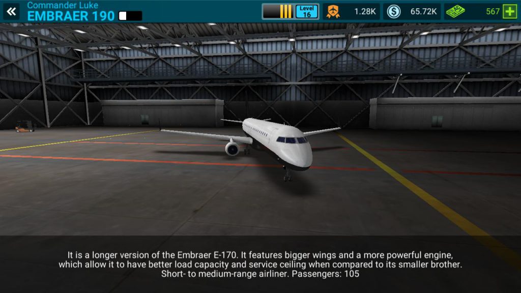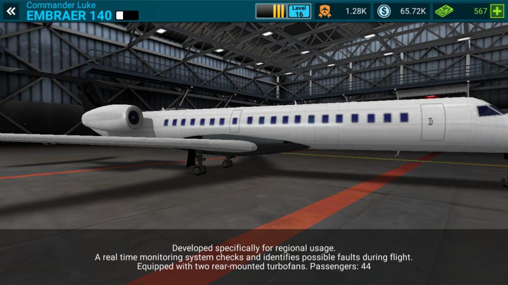 Com relação aos aviões, o game também não deixou a desejar. Aeronaves de passageiros desde o pequeno porte, passando por médio até chegar aos famosos jumbos Boeing 747 e Airbus 380 podem ser comprados (mas depois de muuuito jogar). Um destaque para os modelos da empresa brasileira Embraer que também estão no game e são aviões tão bons quanto os das grandes fabricantes, como o Embraer 140, Embraer 170 e Embraer 190.