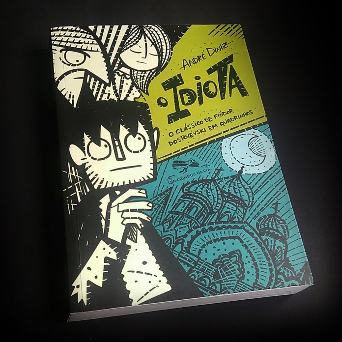 Em preto e branco, e num registro quase sem palavras, André Diniz propõe uma recriação surpreendente de O idiota, obra máxima de Fiódor Dostoiévski. Publicado em 1869 e escrito em meio a crises epilépticas e perturbações nervosas e sob a pressão de severas dívidas de jogo, o romance é um dos mais célebres da literatura mundial. Sua oralidade intensa encontra na explosão e na fluidez, na ternura e na enorme capacidade expressiva do traço de Diniz, uma correspondência única.